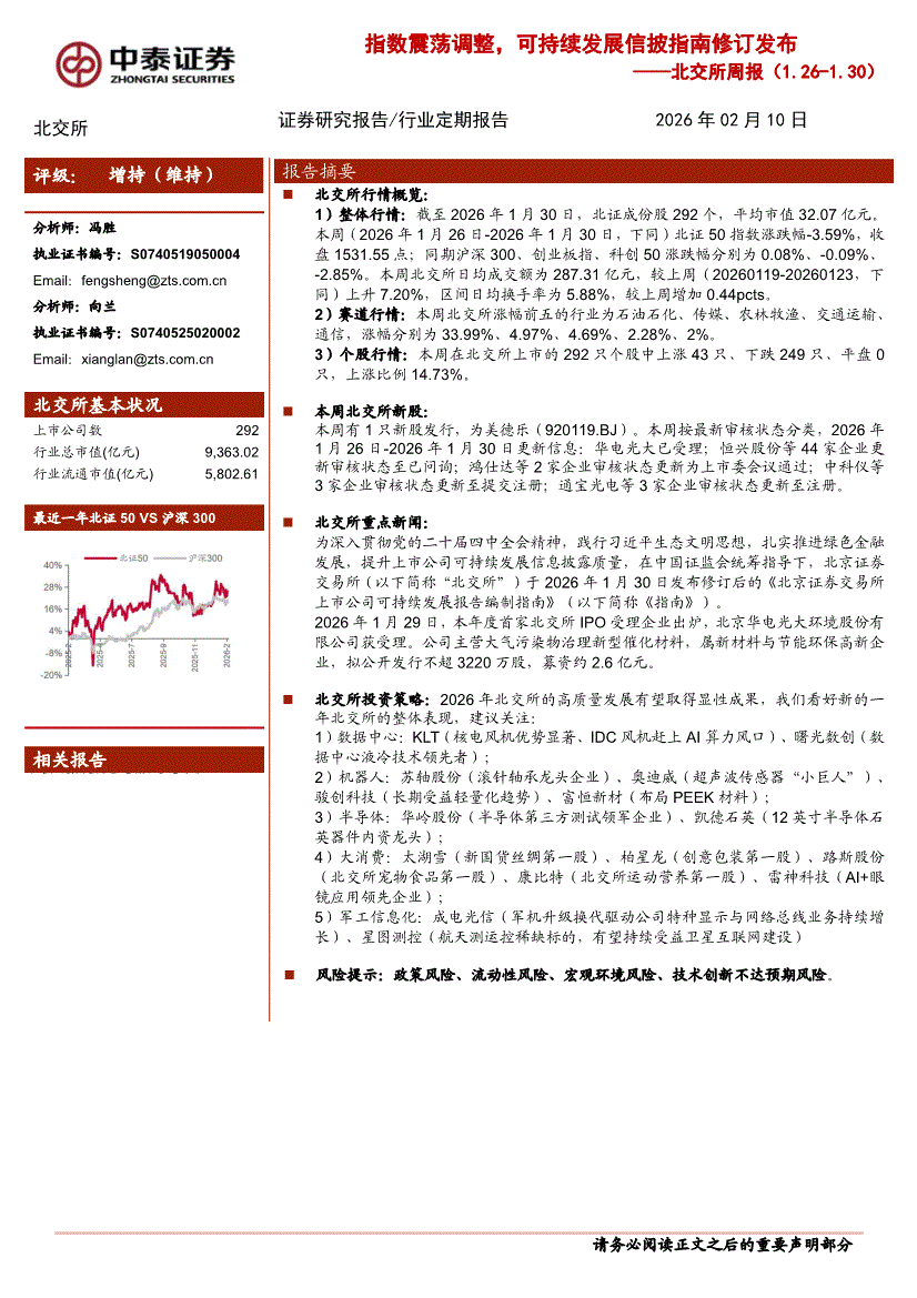 中泰证券-北交所周报:指数震荡调整,可持续发展信披指南修订发布-260210