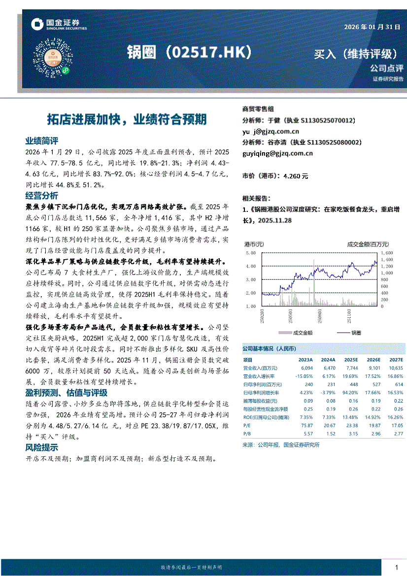 锅圈:国金证券-锅圈-2517.HK-拓店进展加快,业绩符合预期-260131