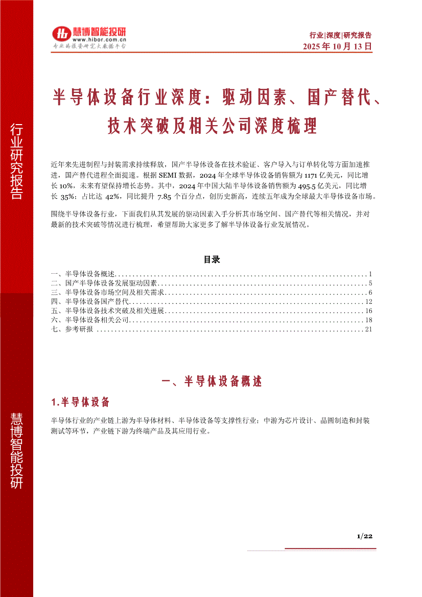 半导体设备行业:慧博智能投研-半导体设备行业深度:驱动因素、国产替代、技术突破及相关公司深度梳理-251013