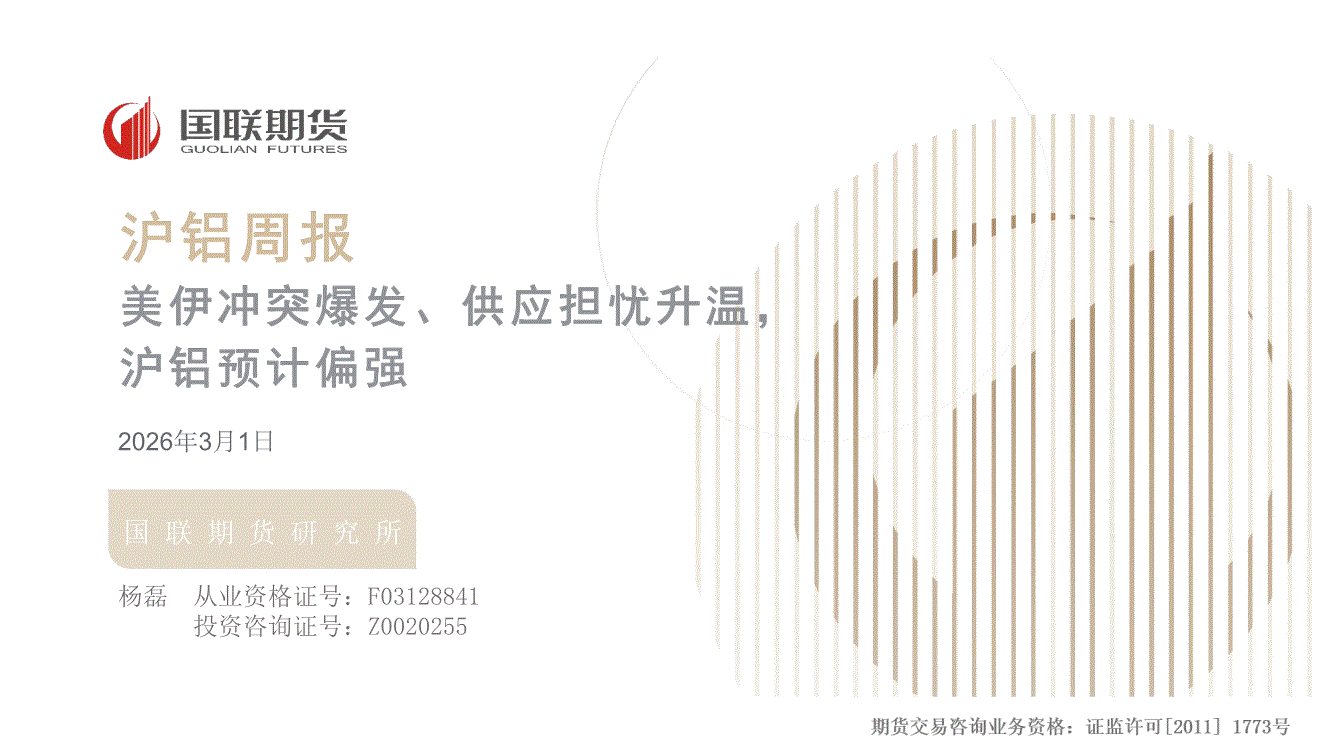 国联期货-沪铝周报:美伊冲突爆发、供应担忧升温,沪铝预计偏强-260301