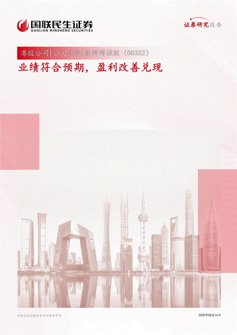 康师傅控股:国联民生证券-康师傅控股-0322.HK-业绩符合预期,盈利改善兑现-250816