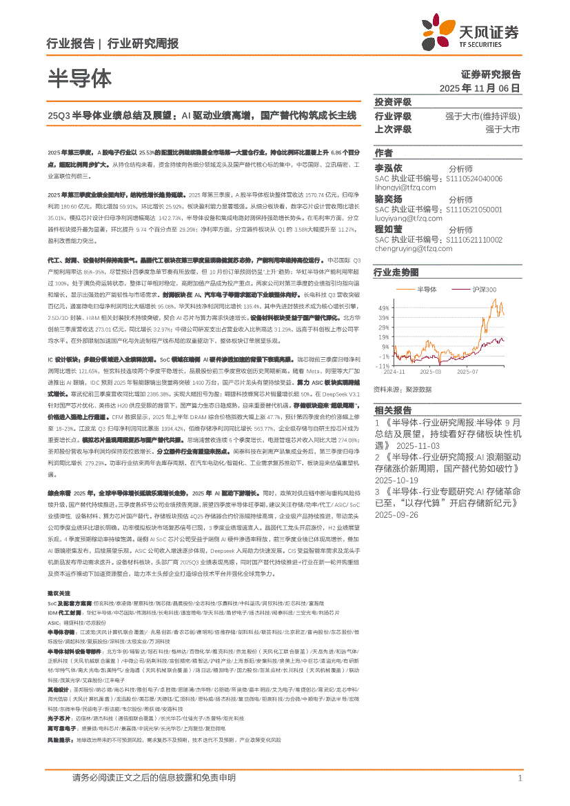 半导体行业:天风证券-25Q3半导体行业业绩总结及展望:AI驱动业绩高增,国产替代构筑成长主线-251106