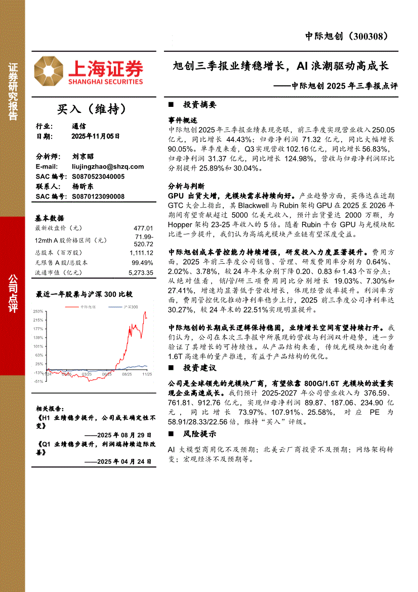 中际旭创:上海证券-中际旭创-300308-2025年三季报点评:旭创三季报业绩稳增长,AI浪潮驱动高成长-251105
