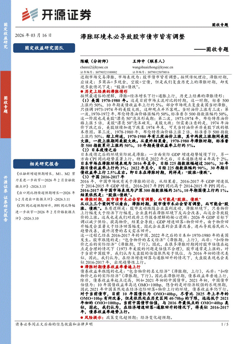 开源证券-固收专题:滞胀环境未必导致股市债市皆有调整-260316