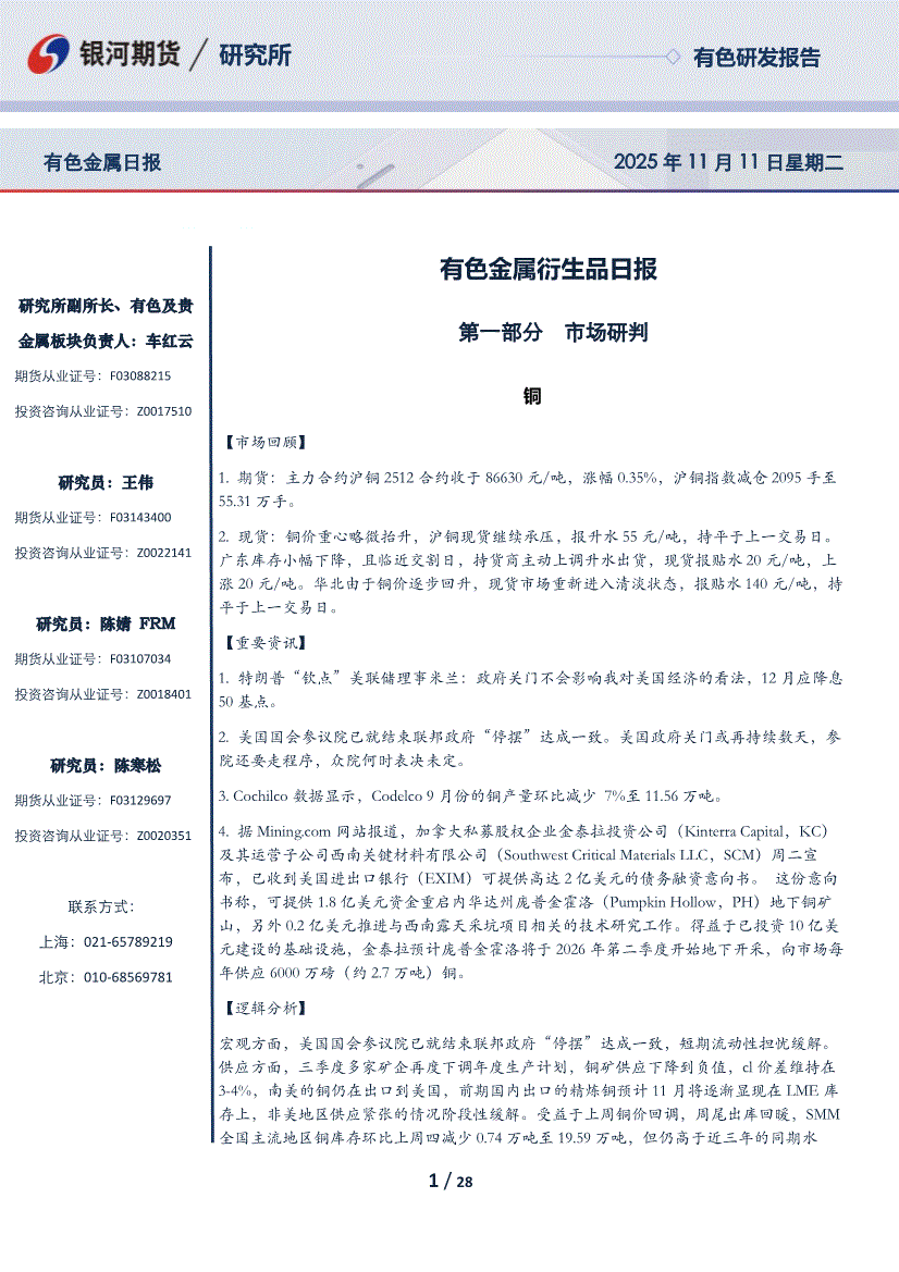 银河期货-铜周报:资金关注度下降,价格被动跟随-251116