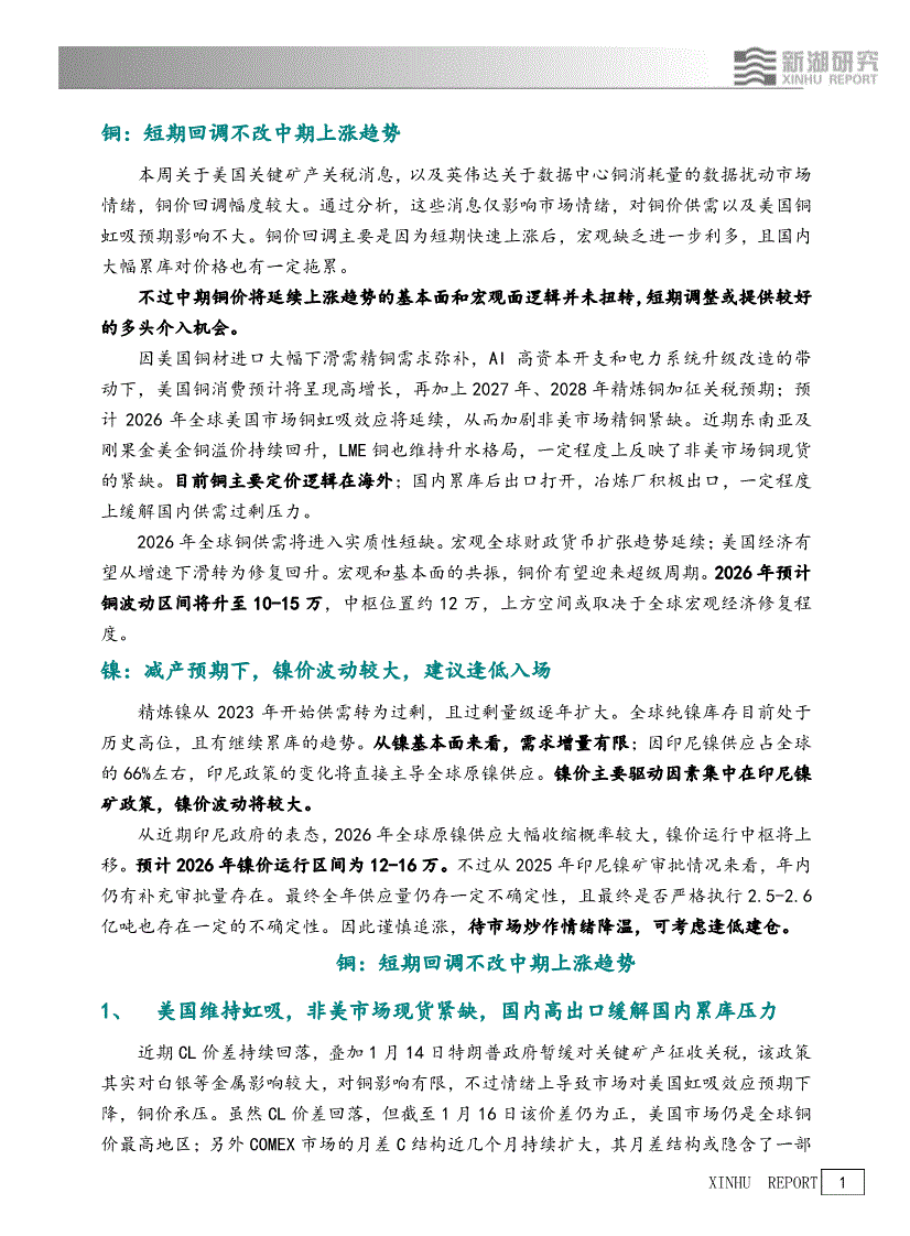 新湖期货-有色(铜、镍)策略:后市节奏该如何把握-260116