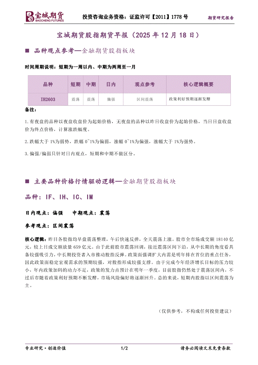 宝城期货-股指衍生品周报:支撑力量显现,股指触底反弹-251130