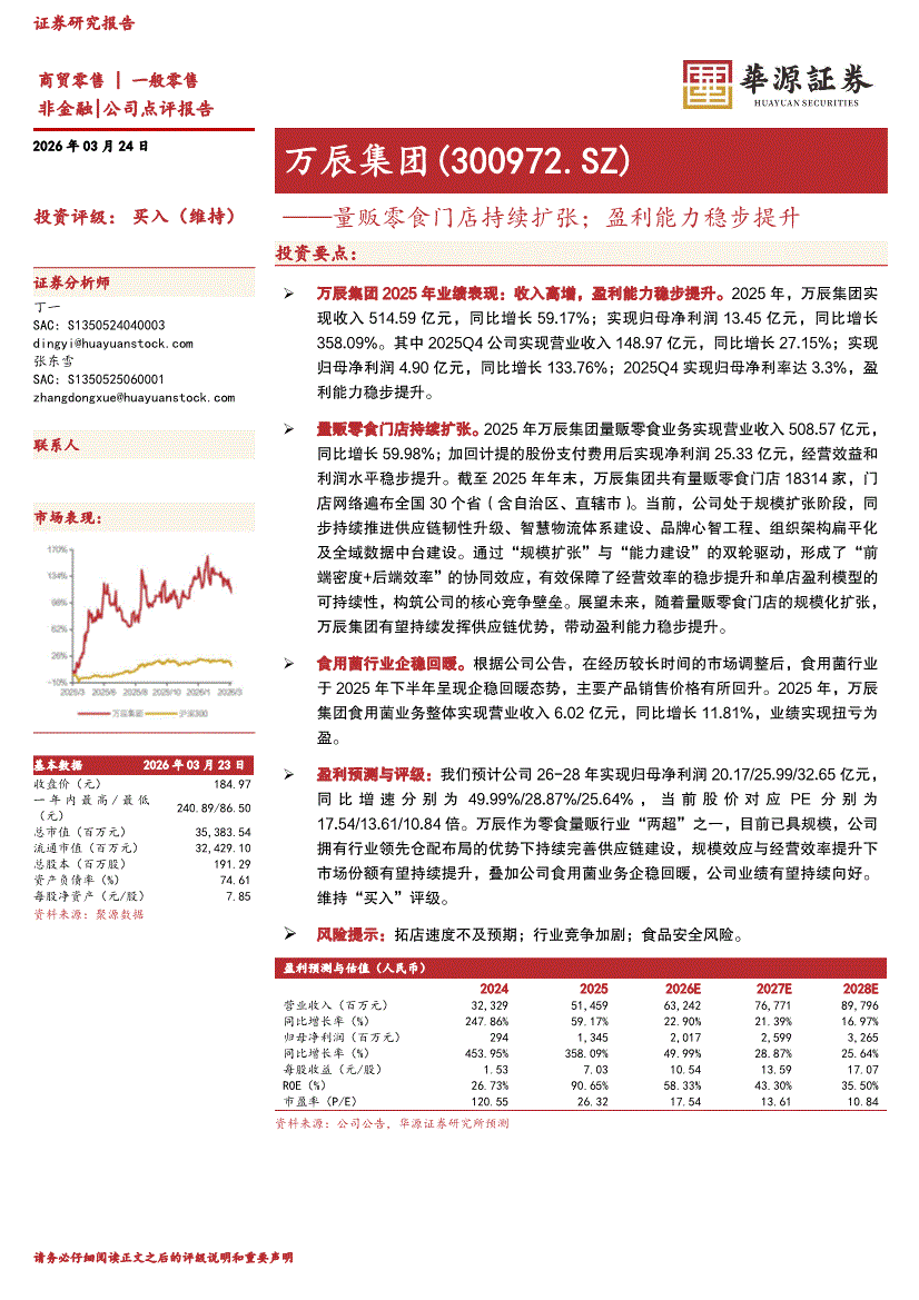 万辰集团:华源证券-万辰集团-300972-量贩零食门店持续扩张;盈利能力稳步提升-260324