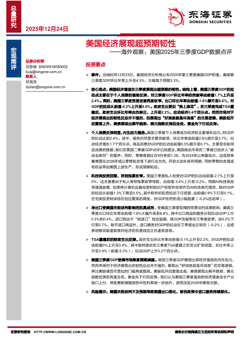 东海证券-海外观察:美国2025年三季度GDP数据点评,美国经济展现超预期韧性-251224