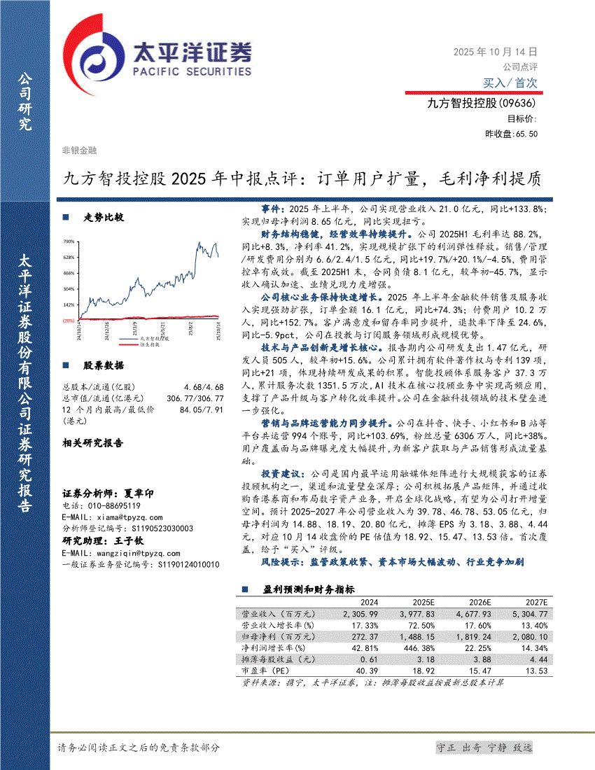 九方智投控股:太平洋证券-九方智投控股-9636.HK-2025年中报点评:订单用户扩量,毛利净利提质-251014