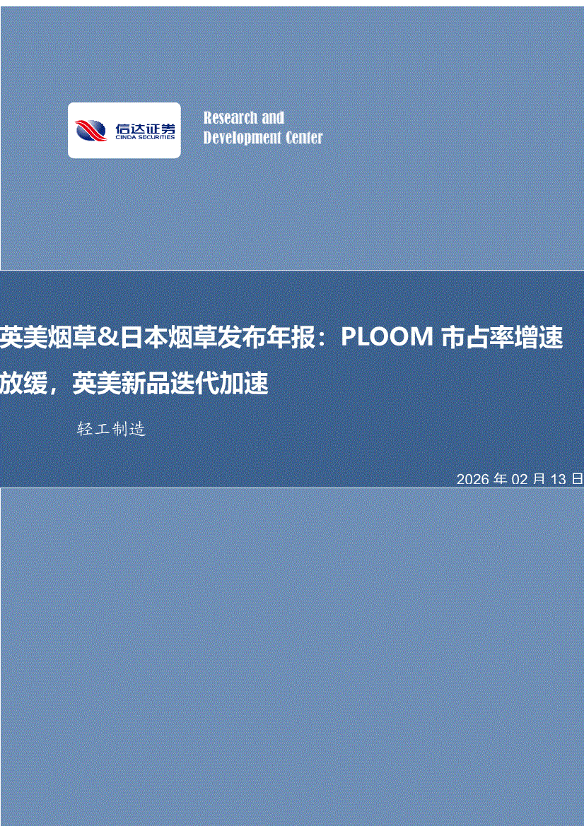 轻工制造行业:信达证券-轻工制造行业英美烟草&日本烟草发布年报:PLOOM市占率增速放缓,英美新品迭代加速-260213