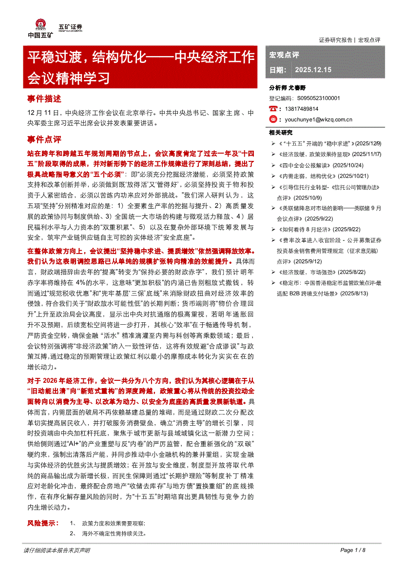 五矿证券-中央经济工作会议精神学习:平稳过渡,结构优化-251215