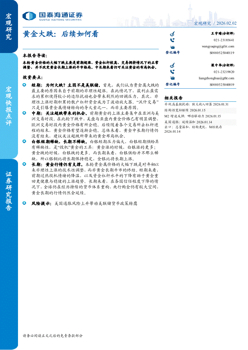 国泰海通证券-黄金大跌:后续如何看-260202