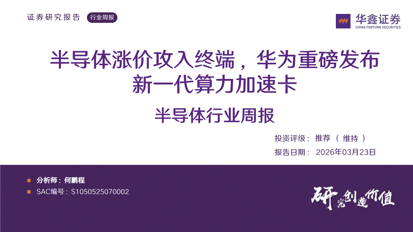 半导体行业:华鑫证券-半导体行业周报:半导体涨价攻入终端,华为重磅发布新一代算力加速卡-260323