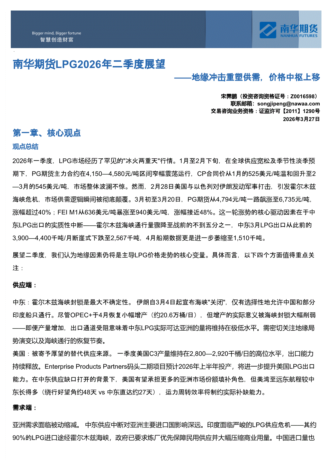 南华期货-LPG2026年二季度展望:地缘冲击重塑供需,价格中枢上移-260327