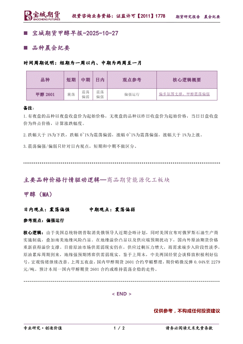宝城期货-橡胶甲醇原油日报:偏多氛围支撑,能化震荡企稳-251027
