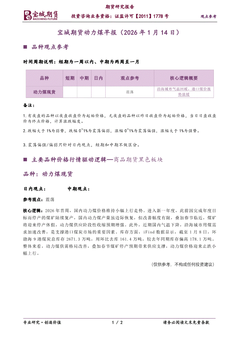 宝城期货-煤焦日报:多空因素交织,煤焦震荡整理-260113