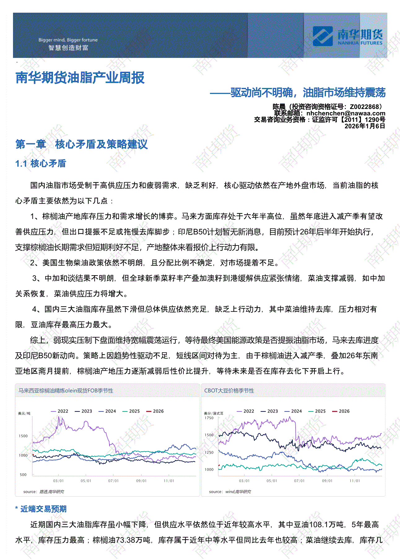 南华期货-油脂产业周报:驱动尚不明确,油脂市场维持震荡-260106