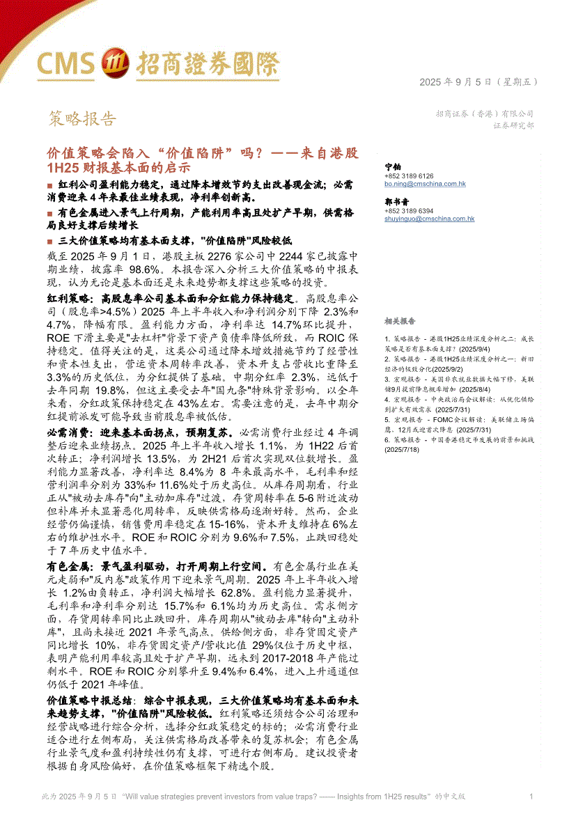 招商证券(香港)-策略报告:价值策略会陷入“价值陷阱”吗?——来自港股1H25财报基本面的启示-250905