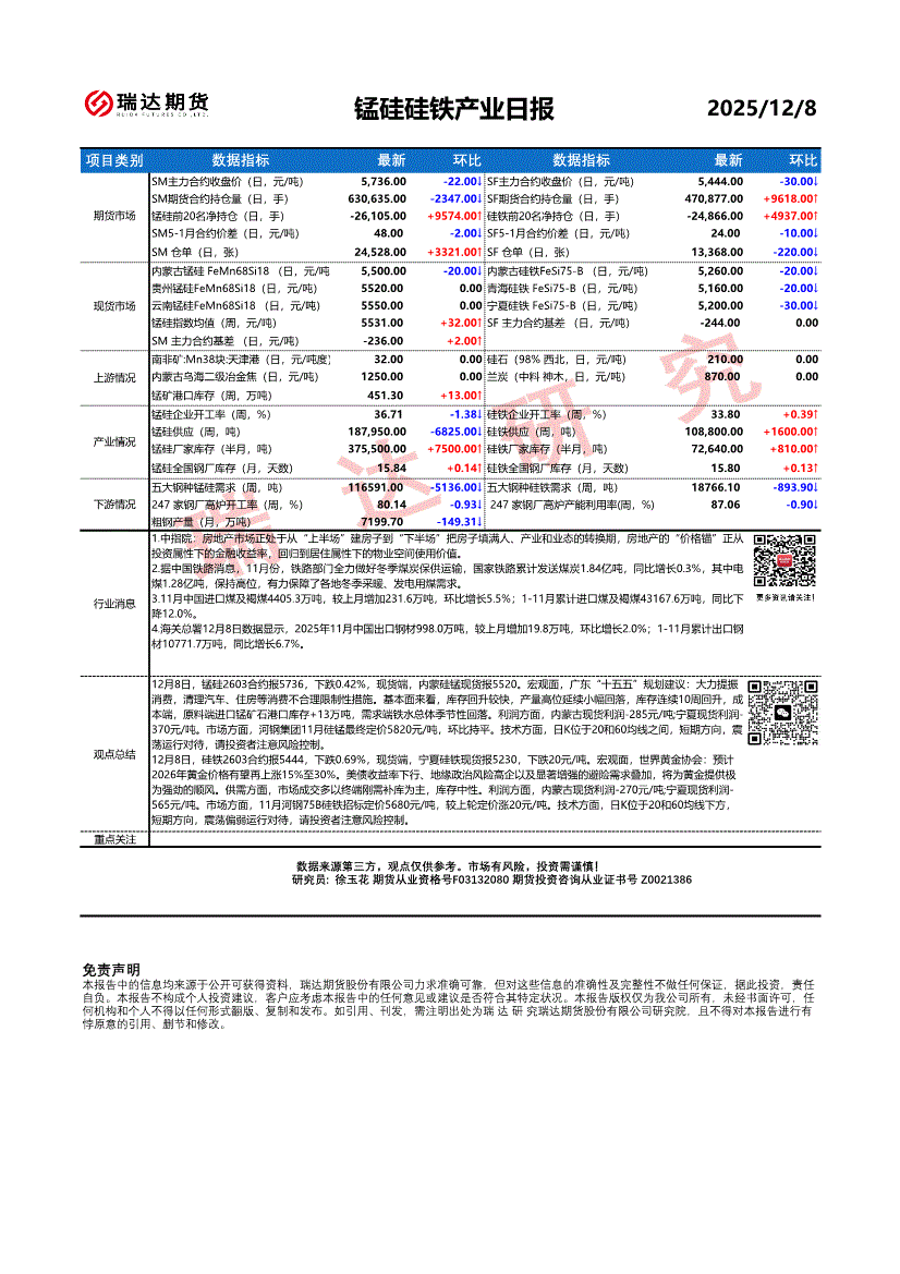瑞达期货-硅锰市场周报:成本支撑底部震荡,供需偏弱库存高位-251212