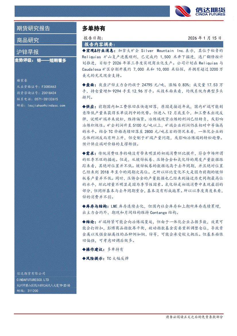 信达期货-锌早报:多单持有-260115