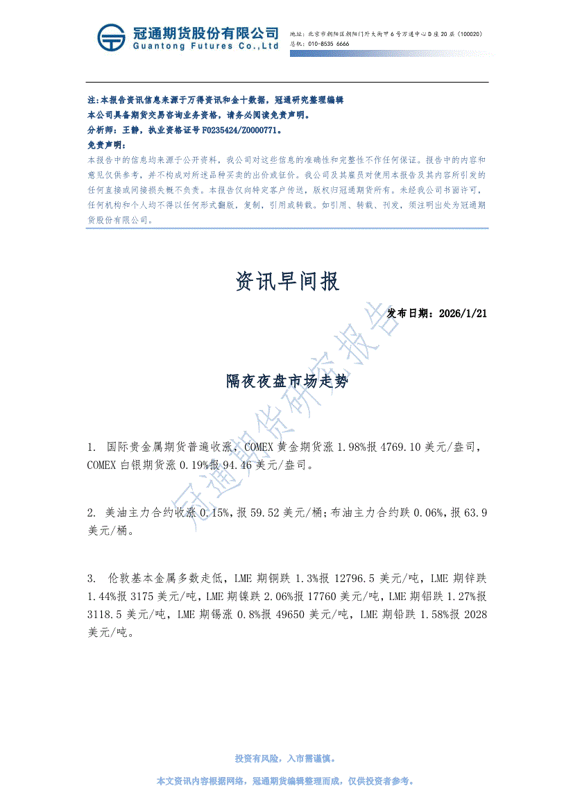 冠通期货-沪铜日报:盘面情绪冷清-260122