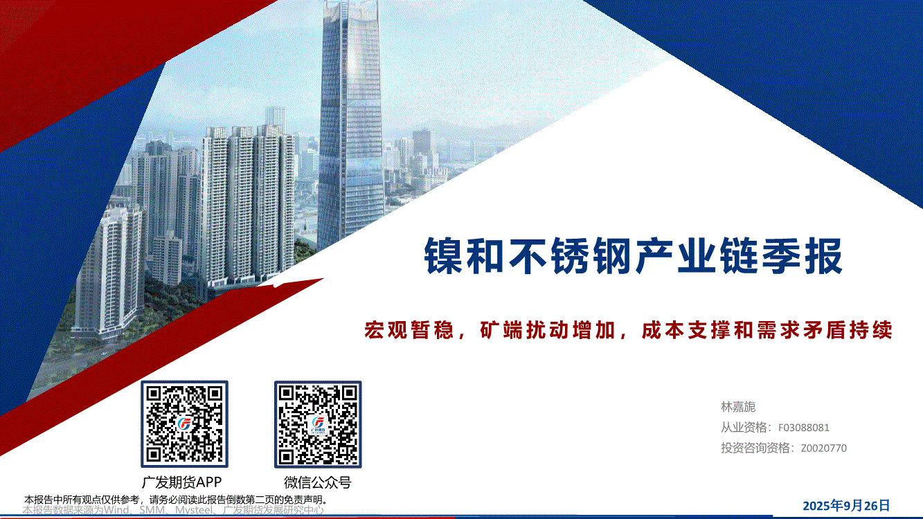 广发期货-镍和不锈钢产业链季报:宏观暂稳,矿端扰动增加,成本支撑和需求矛盾持续-250926
