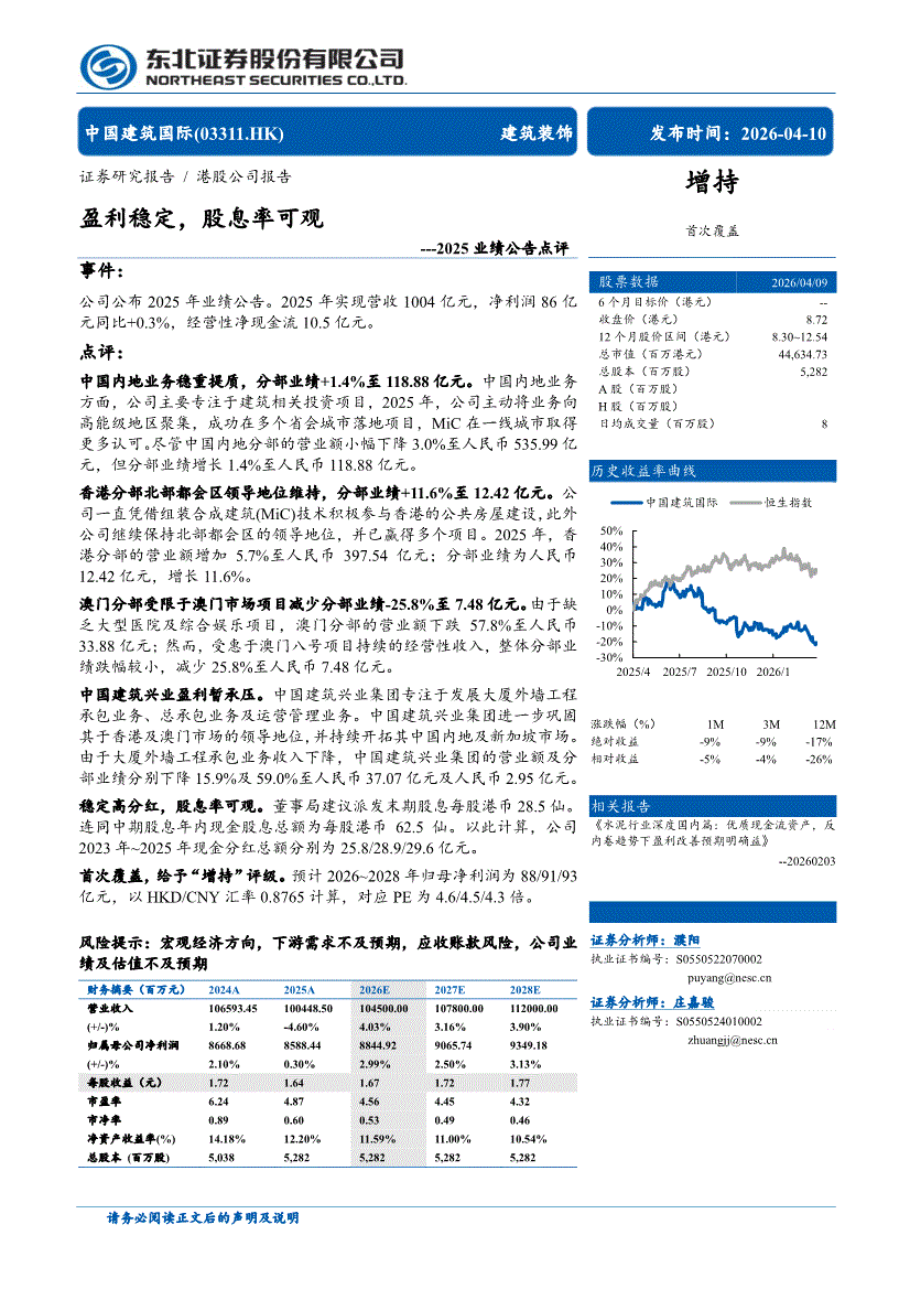 中国建筑国际:东北证券-中国建筑国际-3311.HK-2025业绩公告点评:盈利稳定,股息率可观-260410