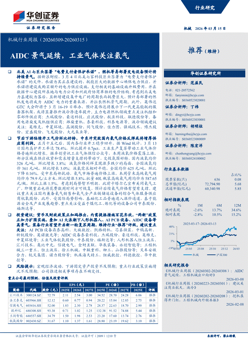机械行业:华创证券-机械行业周报:AIDC景气延续,工业气体关注氦气-260315
