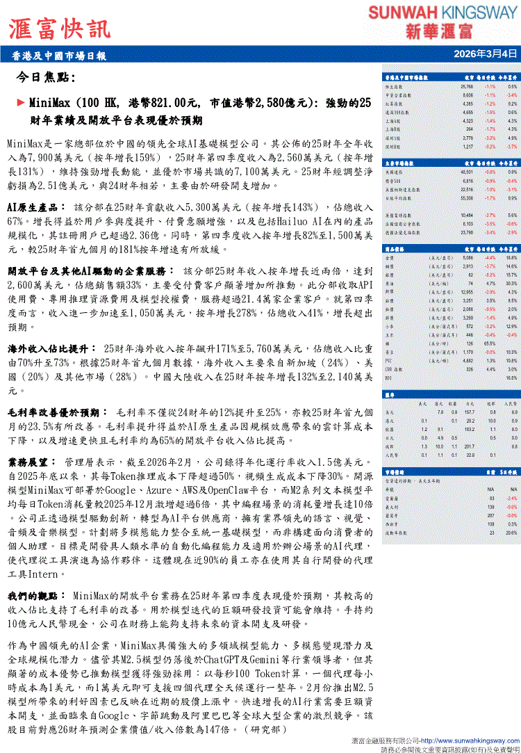 新华汇富-滙富快訊:香港及中国市场日报-260304