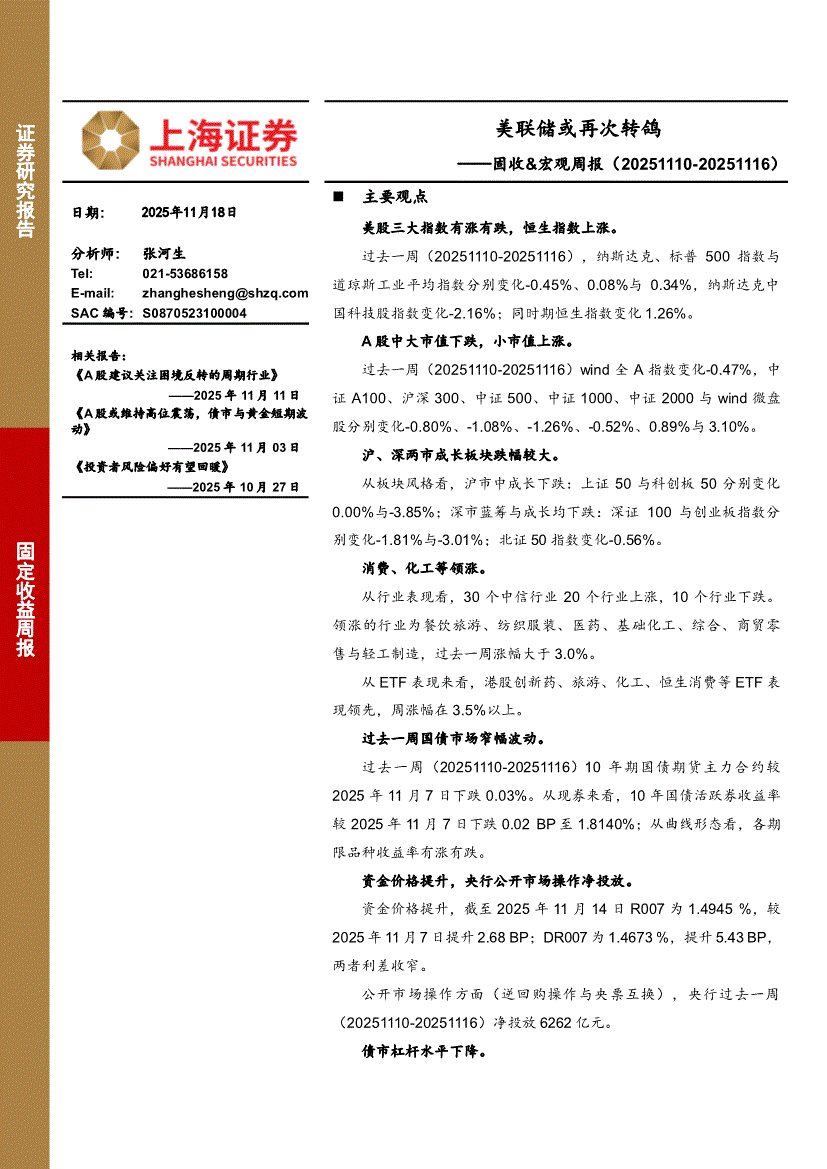 上海证券-固收&宏观周报:美联储或再次转鸽-251118