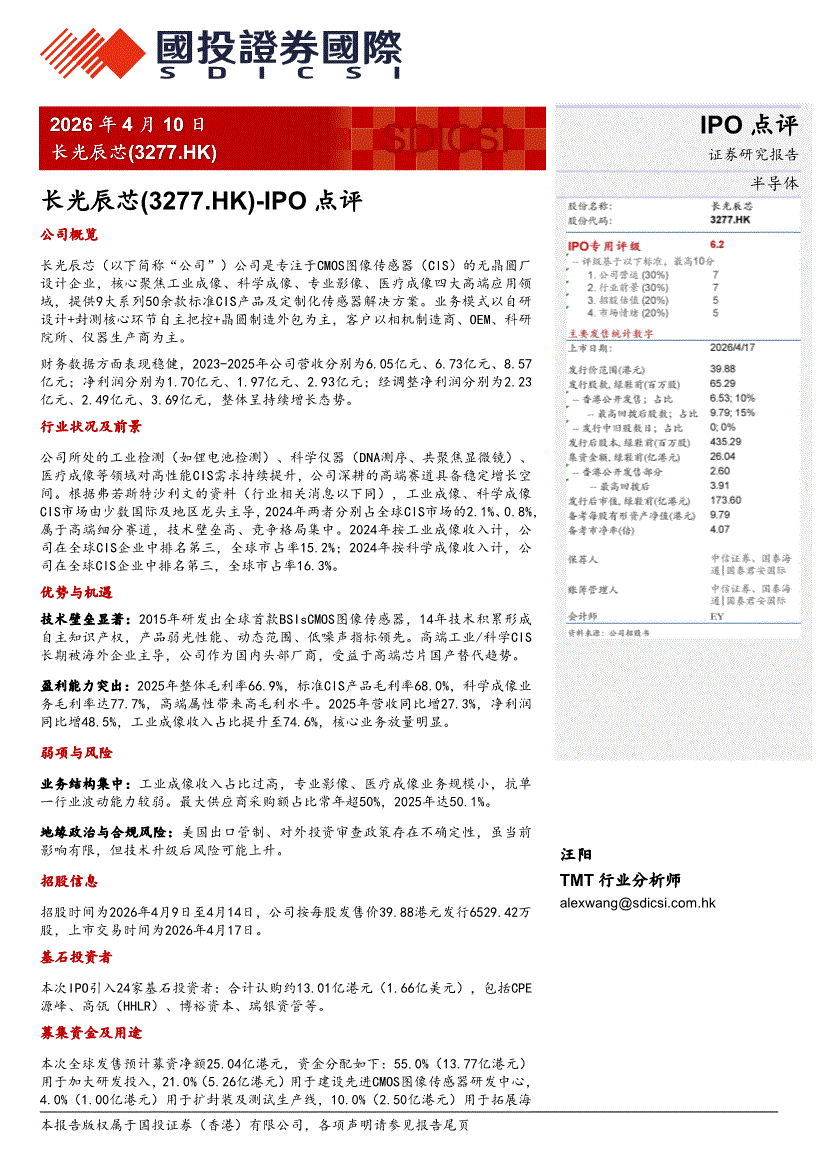国投证券国际-IPO点评:长光辰芯(3277.HK)-260410