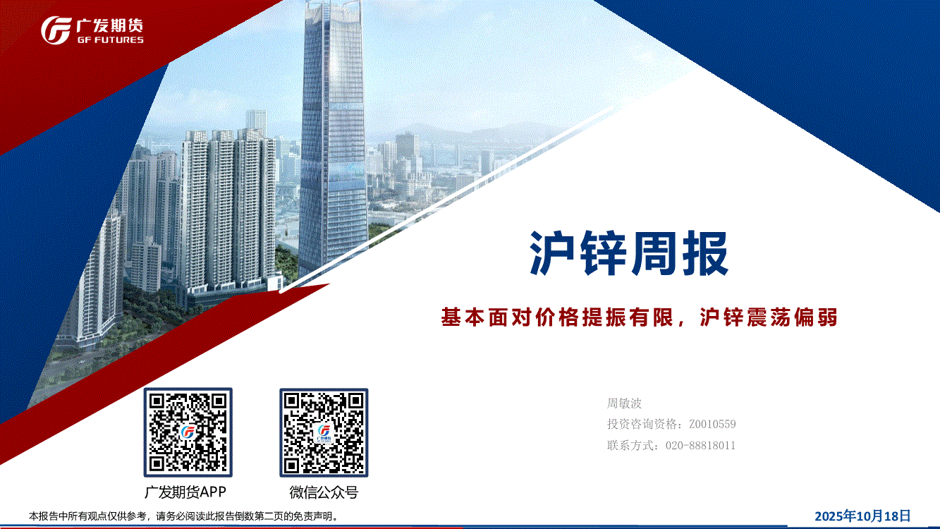 广发期货-沪锌周报:基本面对价格提振有限,沪锌震荡偏弱-251018