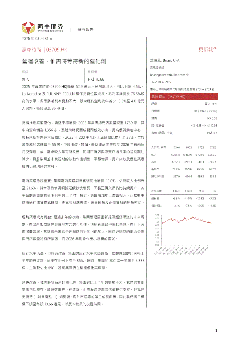 贏家時尚:西牛证券-贏家時尚-3709.HK-營運改善,惟需時等待新的催化劑-260331