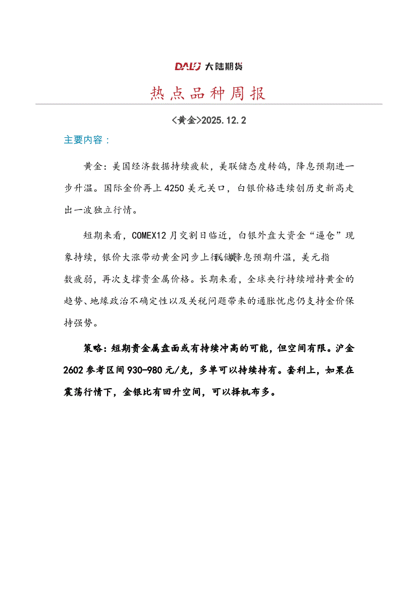 大陆期货-热点品种周报-251202
