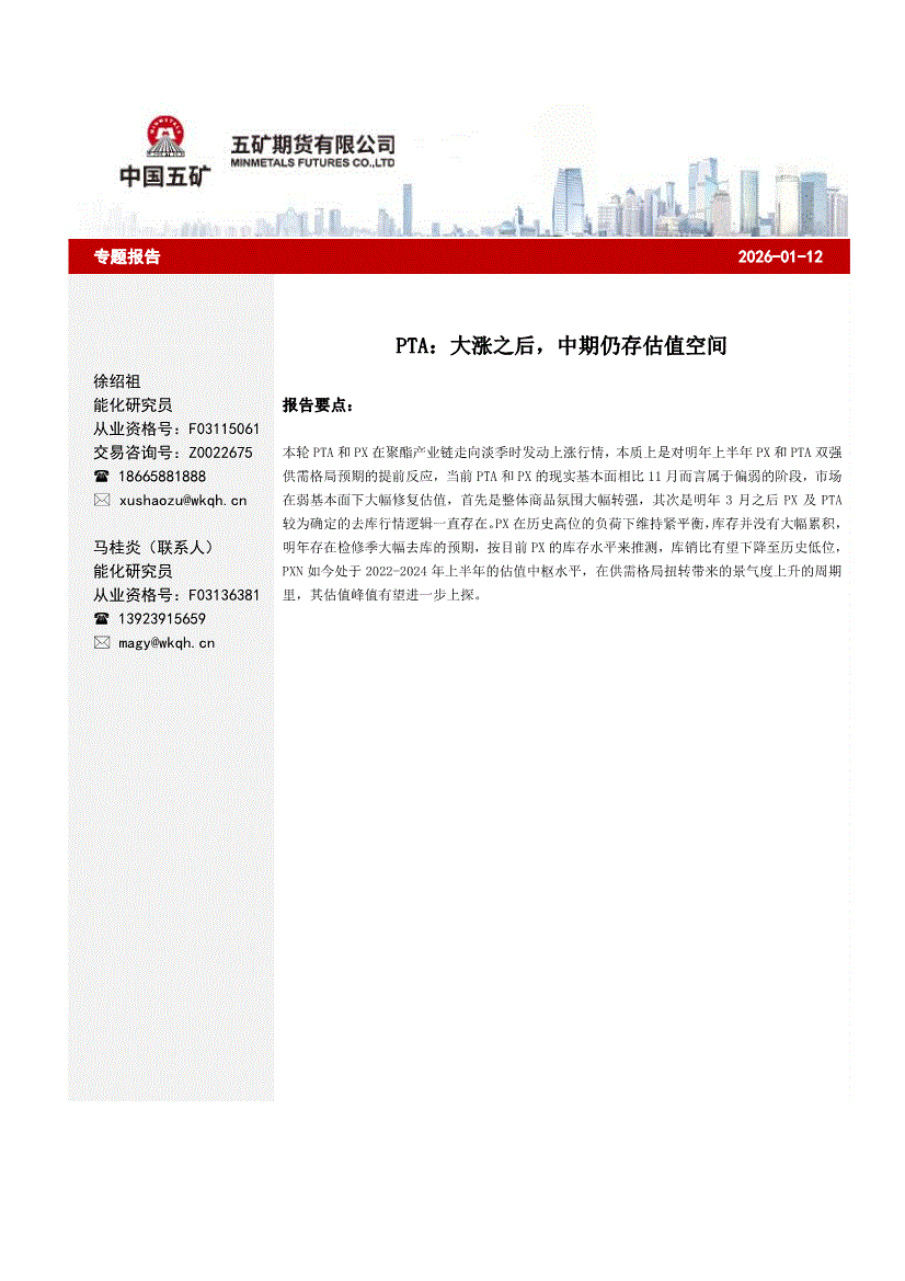 五矿期货-PTA:大涨之后,中期仍存估值空间-260112