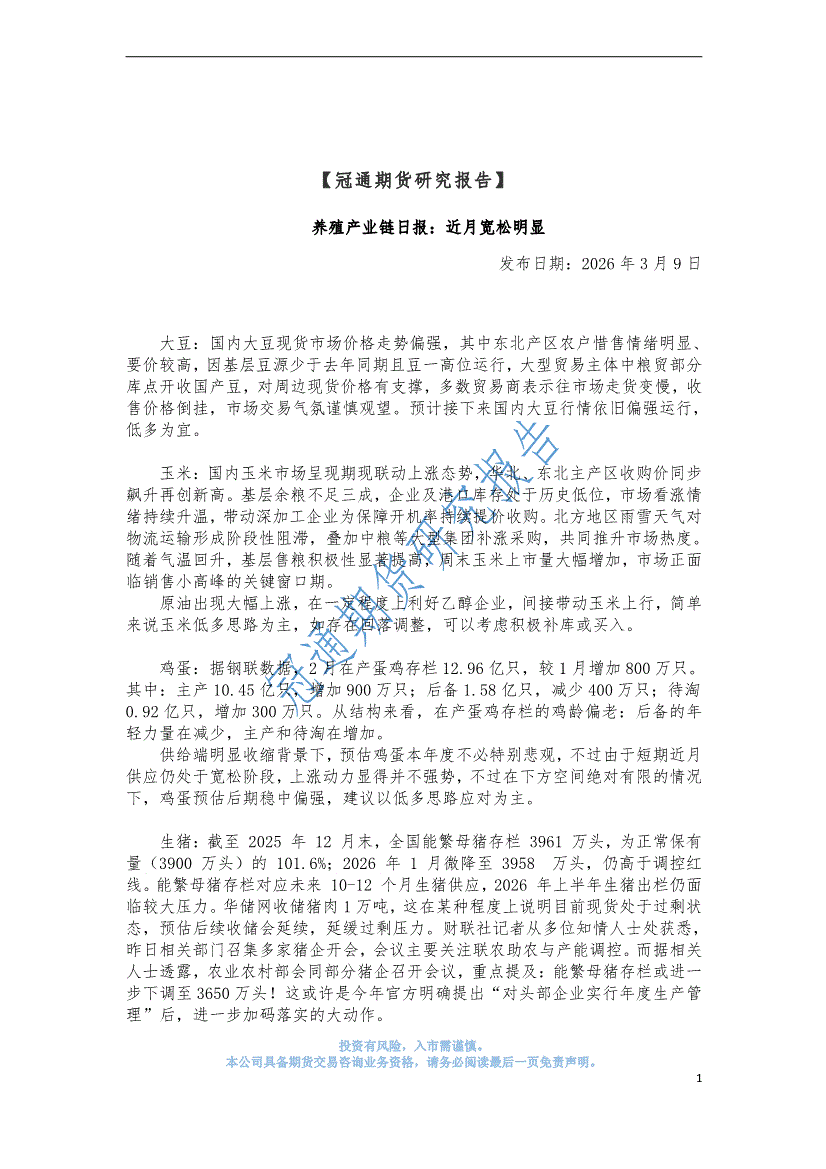 冠通期货-养殖产业链日报:近月宽松明显-260309