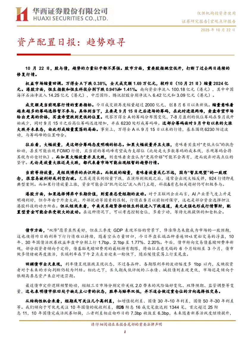 华西证券-资产配置日报:趋势难寻-251022