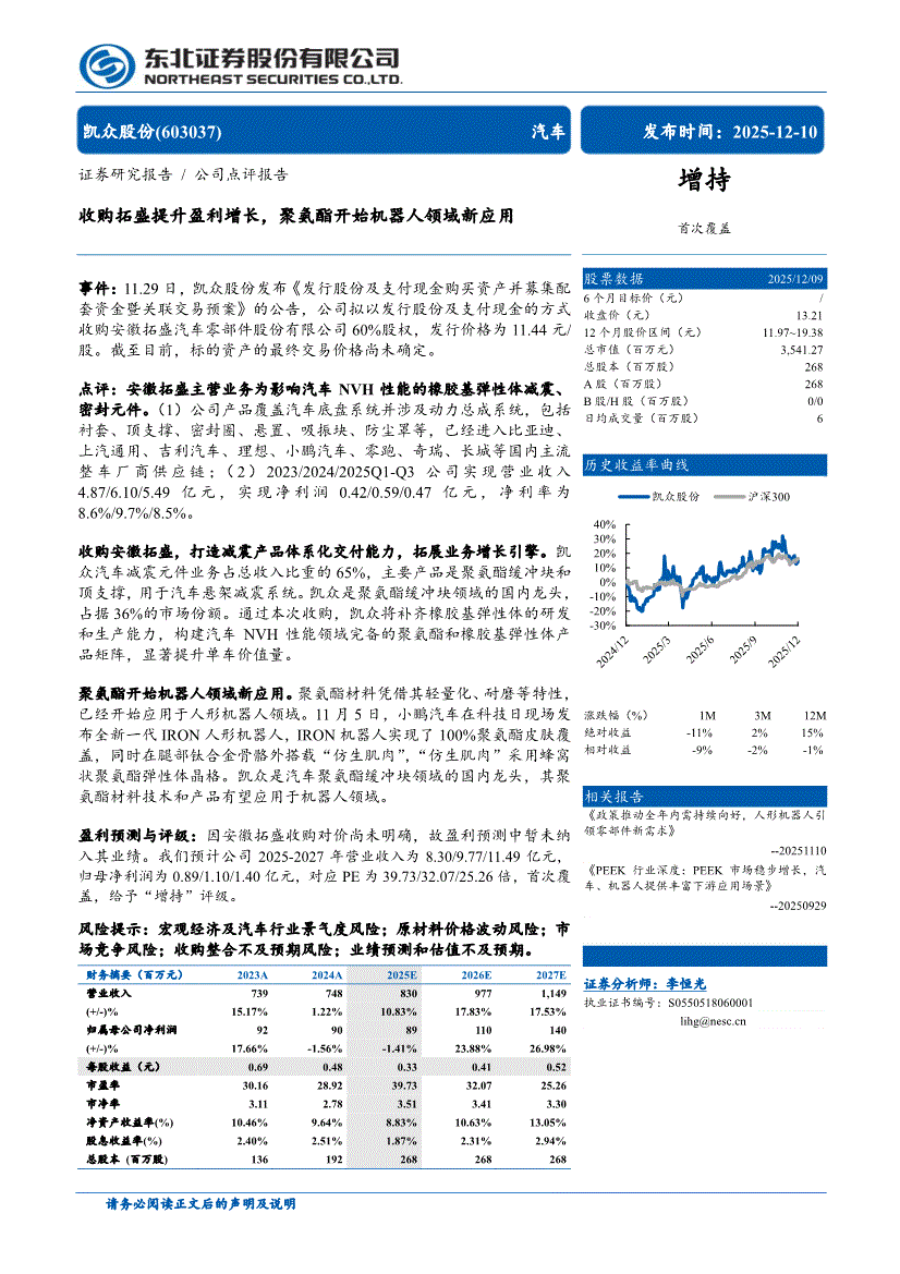 凯众股份:东北证券-凯众股份-603037-收购拓盛提升盈利增长,聚氨酯开始机器人领域新应用-251210