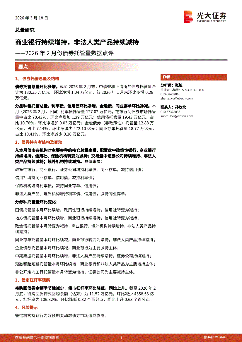 光大证券-2026年2月份债券托管量数据点评:商业银行持续增持,非法人类产品持续减持-260318