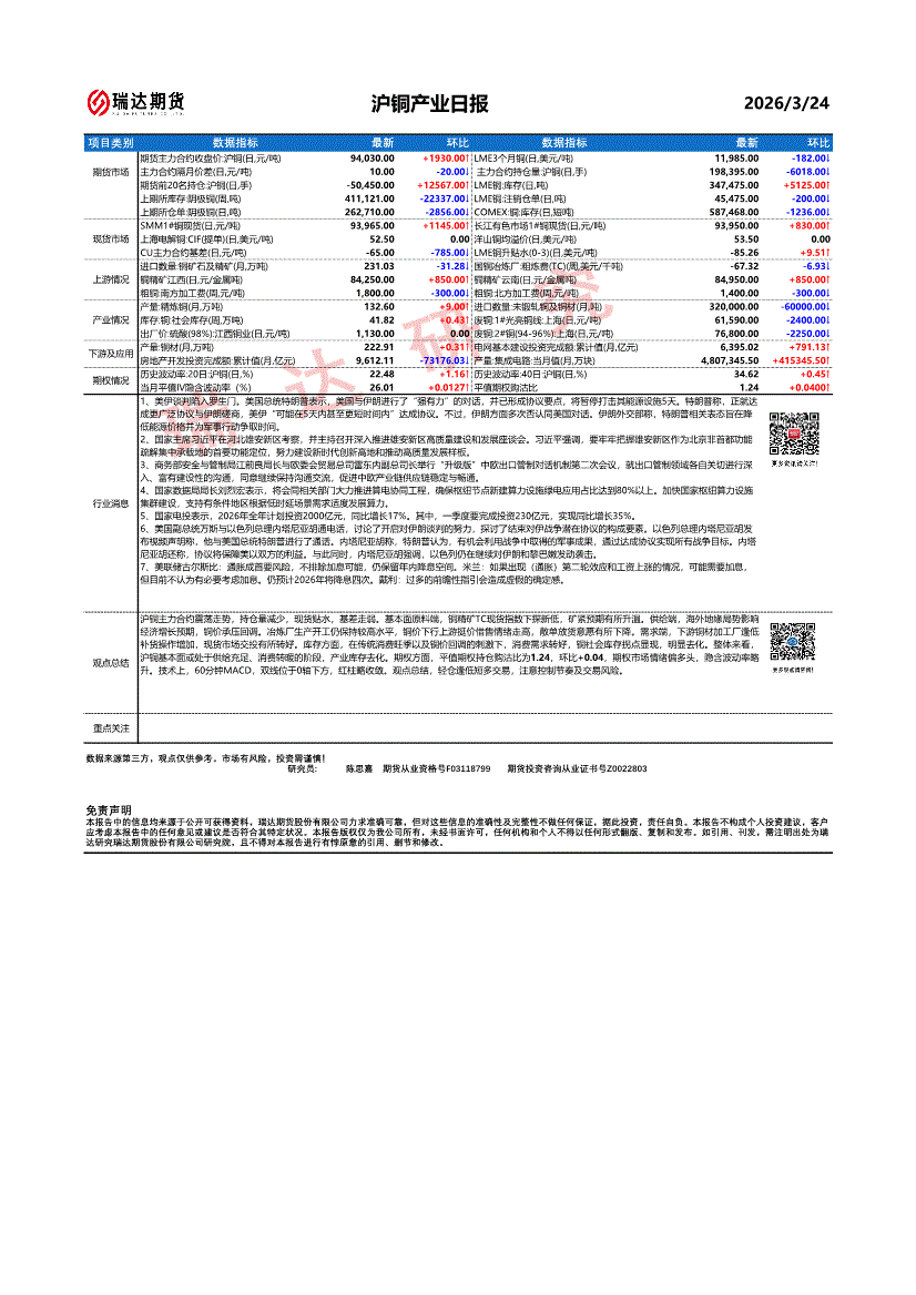 瑞达期货-沪铜产业日报-260324