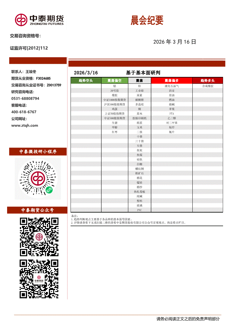中泰期货-晨会纪要-260316