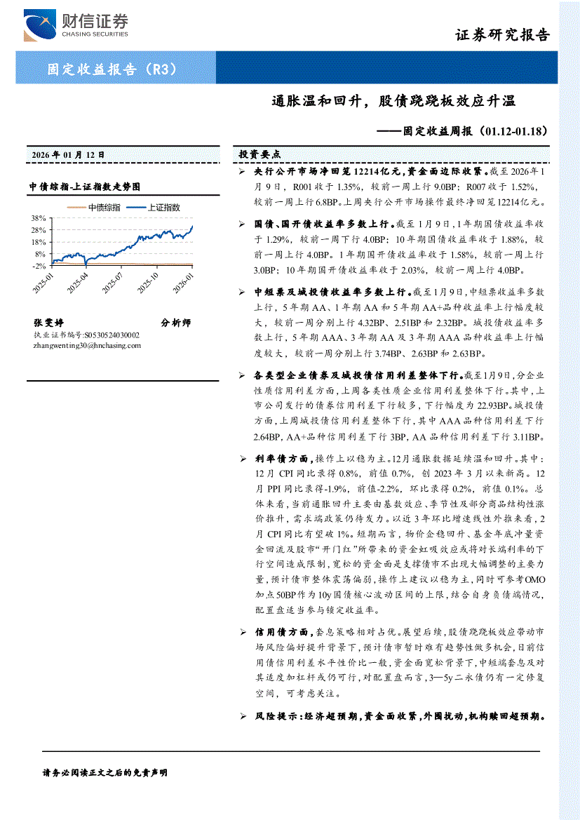 财信证券-固定收益周报:通胀温和回升,股债跷跷板效应升温-260112