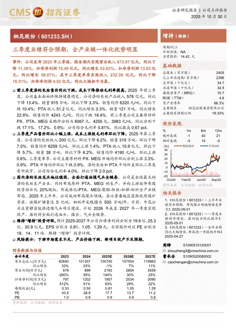 桐昆股份:招商证券-桐昆股份-601233-三季度业绩符合预期,全产业链一体化优势明显-251030