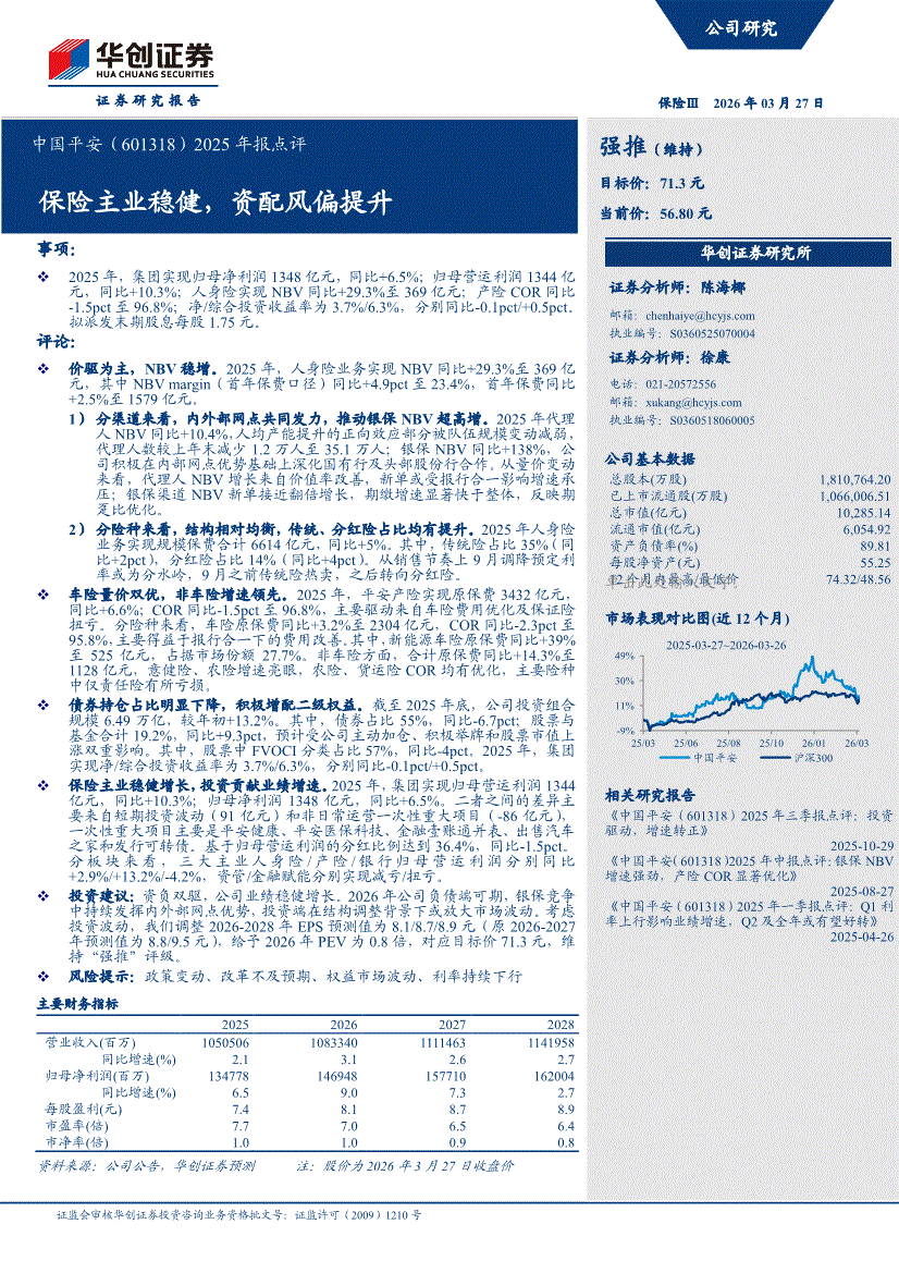 中国平安:华创证券-中国平安-601318-2025年报点评:保险主业稳健,资配风偏提升-260327