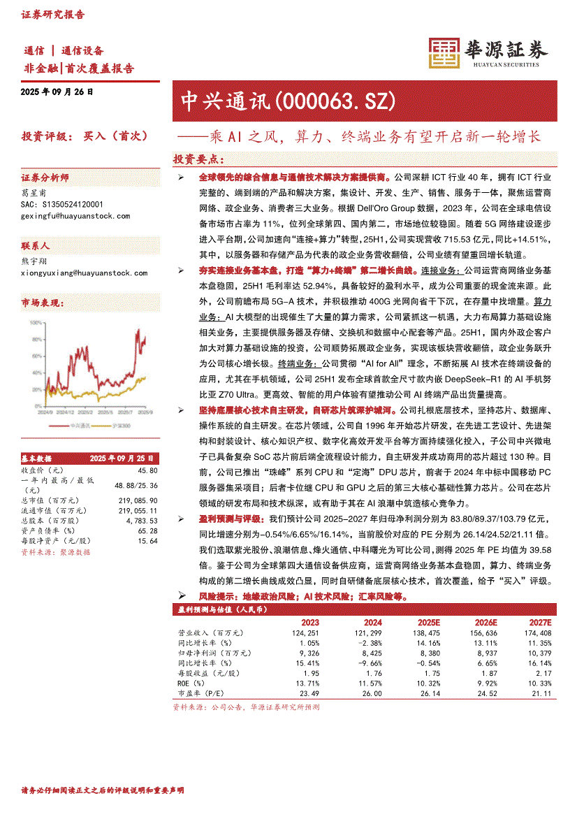 中兴通讯:华源证券-中兴通讯-000063-乘AI之风,算力、终端业务有望开启新一轮增长-250926
