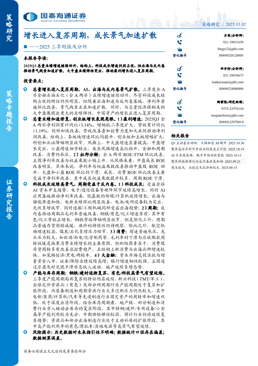 国泰海通证券-2025三季财报及分析:增长进入复苏周期,成长景气加速扩散-251102