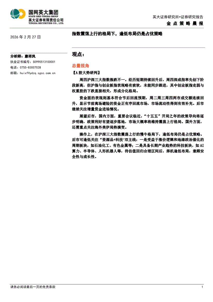 英大证券-每周投资早参:节前市场情绪偏谨慎,个股博弈和结构性轮动为主,节后关注优质成长标的-260209