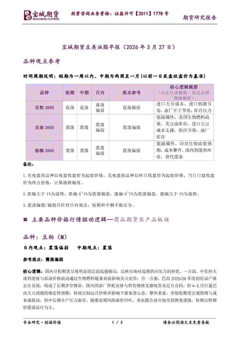 宝城期货-豆类油脂早报-260327