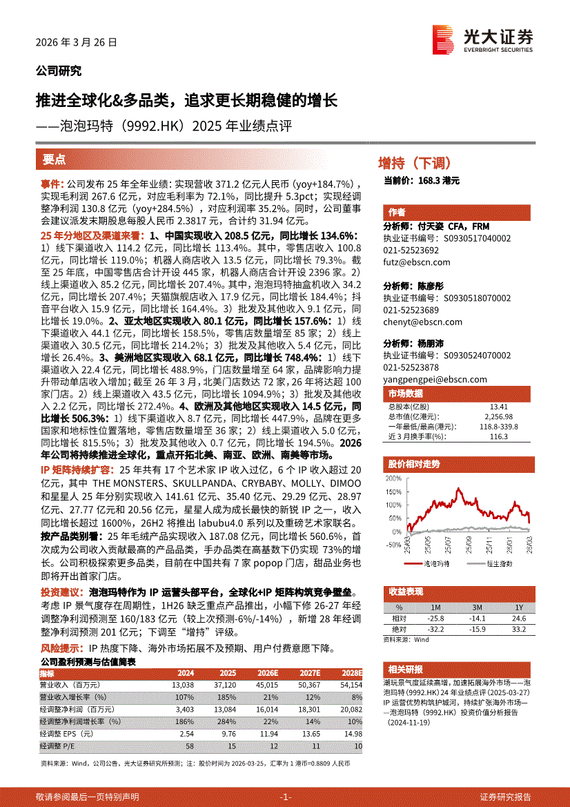 泡泡玛特:光大证券-泡泡玛特-9992.HK-2025年业绩点评:推进全球化&多品类,追求更长期稳健的增长-260326